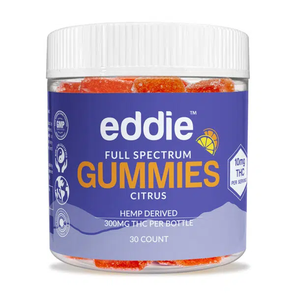 Description: Go ahead and indulge; we won’t tell. Eddie THC citrus gummies are a tasty treat that can be incorporated into any daily routine. Experience the effects of powerful phytocannabinoids with this discreet, delightful, and allergy-friendly hemp-derived edible. Take them with you wherever you go or store them in a convenient place for quick access. Natural sweeteners like tapioca syrup and honey make these THC gummies totally irresistible. Share them with your friends or enjoy them by yourself. But watch out, they’re so delicious that you might want to keep them secret!